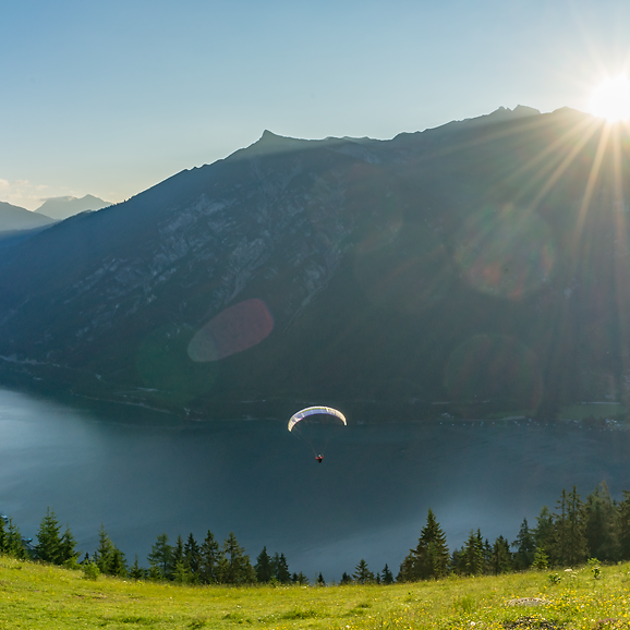 Sie wollen noch höher hinauf? Beim Tandem-Paragleiten mit einem erfahrenen Guide oder auf dem Airrofan-Skyglider erleben Sie Höhenflüge im wahrsten Sinne des Wortes. Unten leuchtet der glitzernde Achensee, ringsum breiten sich die Berge aus und über Ihnen nur der tiefblaue Himmel. Etwas gemütlicher, aber vor allem romantischer, ist eine Ballonfahrt hoch über den Tiroler Alpen. So weit oben, wenn die Welt ganz klein erscheint, eröffnet sich uns manchmal auch eine ganz neue Sicht auf die Dinge des Alltags.