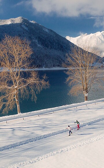 Wenn Sie leidenschaftlich gern dem Langlaufsport nachgehen, sind Sie in unserem Adults Only-Refugium am richtigen Ort. 150 km klassische Loipen und 51 km Skating-Loipen führen ganz in unserer Nähe durch eine magisch anmutende Winterlandschaft. Gleiten Sie auf der sonnigen Seeloipe vom Annakirchl zum Achensee oder tauchen Sie im Unterautal in den unberührten Winterwald ein. Die Kombination aus meditativem Naturerlebnis, gesunder Bewegung und sportlicher Herausforderung wird Ihnen ein umfassendes Wohlgefühl schenken.