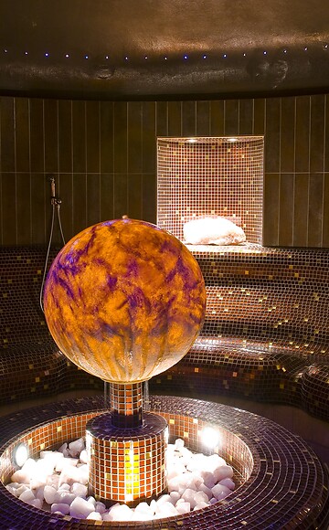 Spüren Sie die Kraft der Hitze unter der Erde! Im Soledom steigen Dampf und hochkonzentrierte Sole aus dem Karwendelgebiet zur Kuppel auf. Trockene Hitze begegnet Ihnen dagegen in der Tempelsauna. Zwischen hochgewachsenen Säulen, indischem Sandstein und chinesischen Schriftzeichen werden Sie wie durch Zauber in eine ferne Welt versetzt. Und in der Drachensauna, beim wohltuenden Duft ätherischer Öle, begegnen Sie dem feurigen Wächter des Versunkenen Tempels.