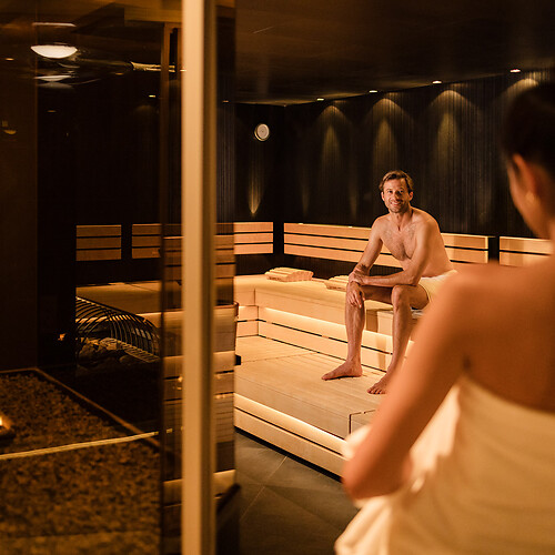 In unserer Wohlfühlwelt treffen Hitze und Kälte auf wohltuende Weise aufeinander. Finden Sie die richtige Sauna für Ihr Bedürfnis, kühlen Sie sich mit Wasser oder Eis und ruhen Sie im Zengarten.