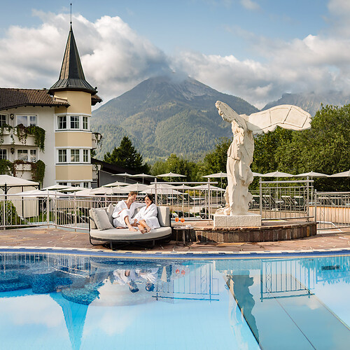 Die Wasserwelt in unserem Wellnesshotel am Achensee erstreckt sich über den Innen- und Außenbereich und umfasst Besonderheiten wie den Flüsterpool und den Yin-Yang-Pool.