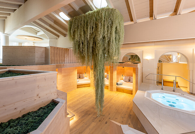 Unser verborgener Wellnessbereich tief im Inneren der Erde. Spüren Sie die Kraft der Elemente im Raum der Stille, Soledom, in der Drachen- und Tempelsauna und auf dem Pfad des Wassers.