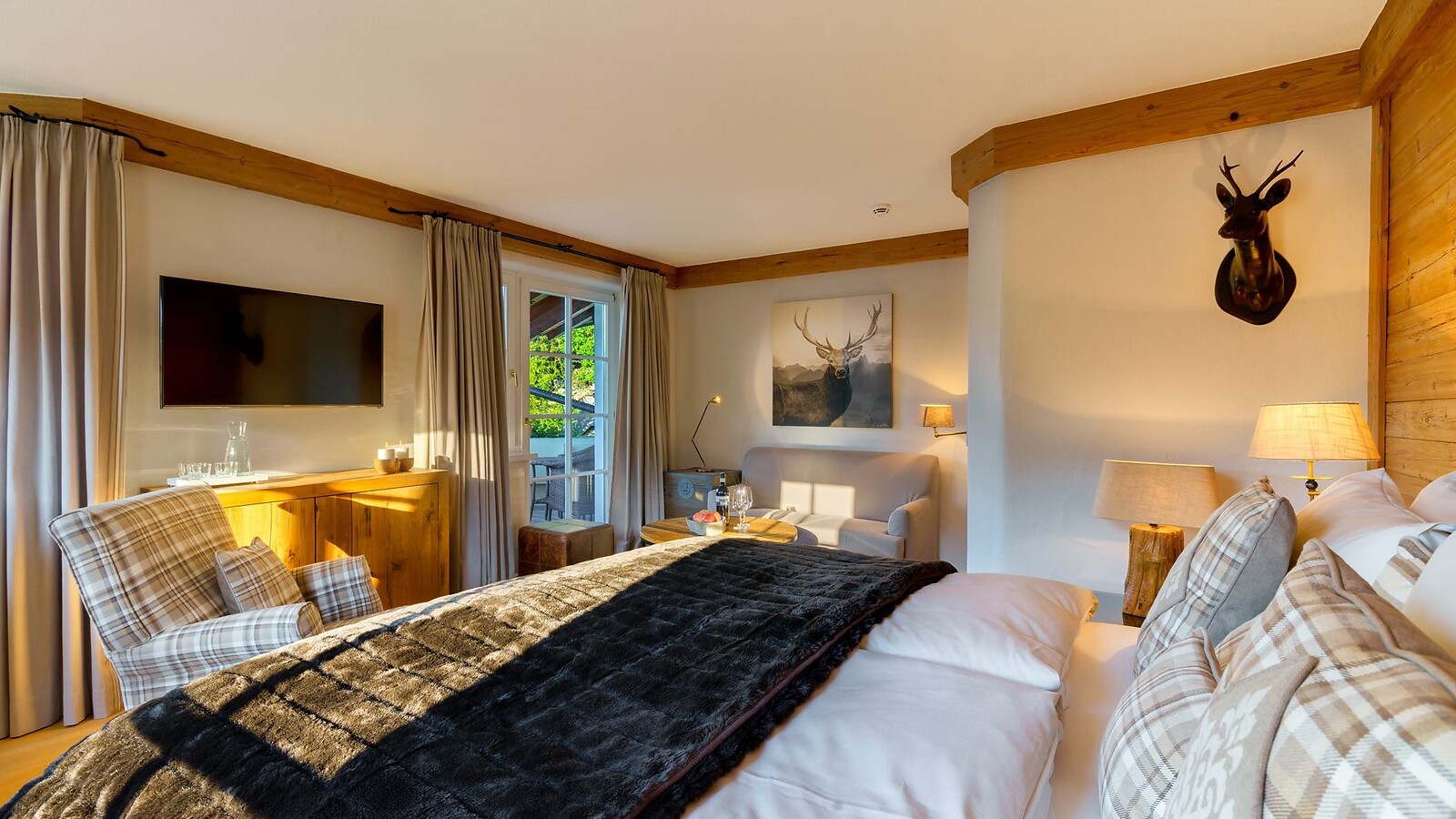 Das integrierte Einzelschlafzimmer ermöglicht großzügiges Wohnen bis zu drei Personen. Die stimmungsvollen Dekorationen geben dem „Platzhirsch“ seinen Namen.