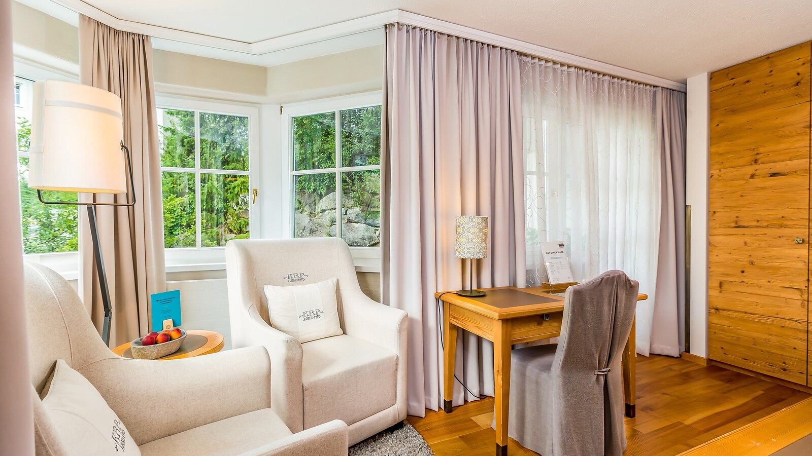 Mit hochwertigen Betten, edlem Holzboden sowie Badezimmer mit separatem WC und Balkon.