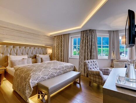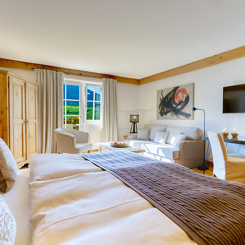Dogs are not only welcome here - we offer a range of exclusive services so you can enjoy your holiday worry-free with your four-legged companion. On arrival, your dog will be greeted with a treat, and in your room, a dog blanket, bowl and basket await. At our luxury dog-friendly hotel in Austria, the Schlossl Suite, Sonnberg Studio, Junior Suite and Landhaus room are ideal for guests with dogs (surcharge applies, max. two dogs per room).