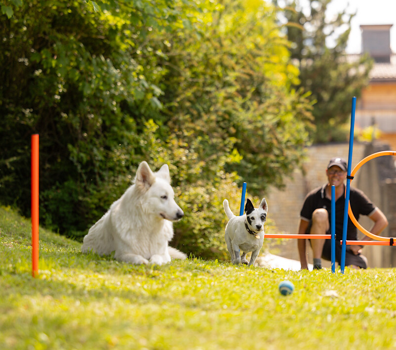 We have our own dog play area with equipment, a dog-friendly lawn with walking station, and dog trainers or photographers available on request.