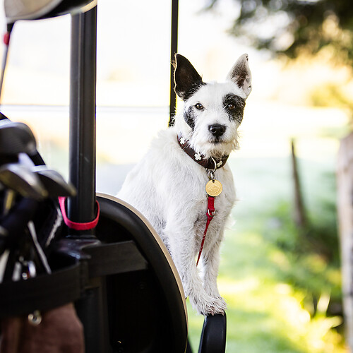 Dogs are welcome at breakfast and dinner in the lounge and on the terrace, as well as on the golf course (on leash). Leashes are required throughout the hotel. Dogs are not allowed in the wellness area, on the sunbathing lawn, in the bistro or the pool lounge.