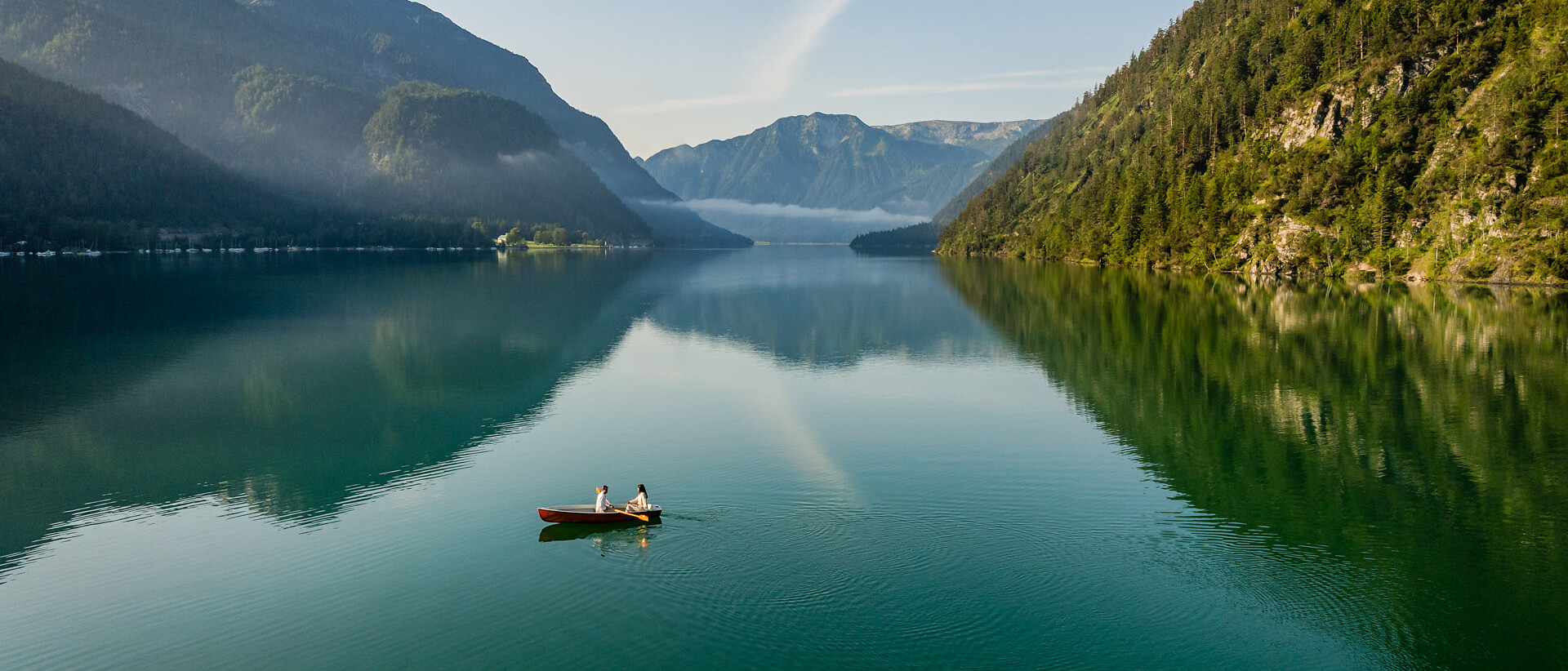 Feel the power of nature up close during one of the many water sports on Lake Achensee. A gentle southerly wind in the morning and a strong northerly wind in the afternoon create ideal conditions for windsurfing, kitesurfing, wing foiling and sailing. You can explore the lake in a more relaxed way by canoeing, stand-up paddling or taking a boat trip. Diving in Achensee opens up a completely new world of adventures. The crystal-clear water offers fascinating insights into the underwater world. You can of course also swim in the lake: Tyrol’s largest lake has drinking-water quality and reaches 18-22 °C in summer. Public bathing spots can be found in Achenkirch, Pertisau and Maurach.