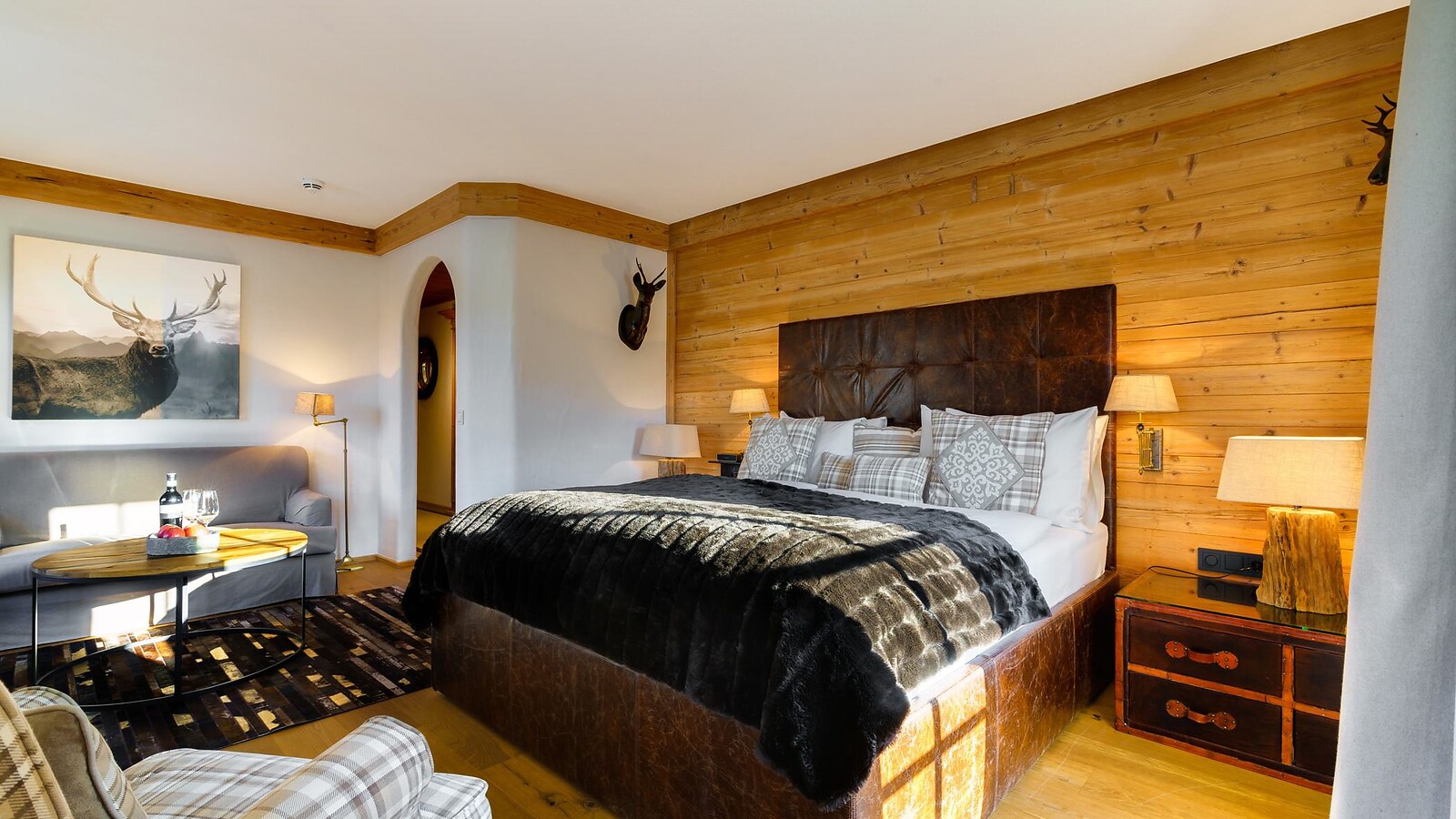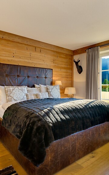 The integrated single bedroom allows spacious living for up to three people. The atmospheric decorations give the “Platzhirsch” its name.