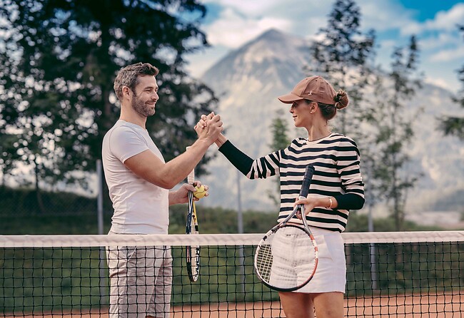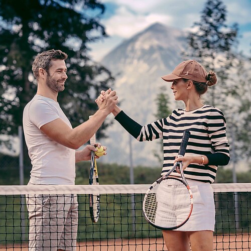 The indoor tennis hall with two velour granulate courts and the squash court is the perfect place to train speed, endurance, and coordination. If required, you can rent the necessary equipment directly at our tennis hotel in Tyrol, and we are also happy to arrange a playing or training partner for you. For valuable tips from a professional, simply book a private lesson or one of our training packages.